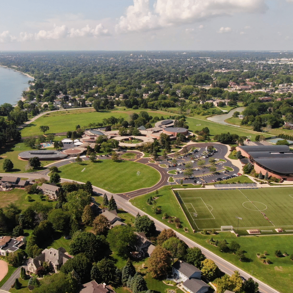 The campus itself is a major point of pride. Spread across 60 acres overlooking Lake Michigan, it reflects the architectural influence of Frank Lloyd Wright through its curved walls, skylights, and seamless connection to nature. Designed originally by Taliesin Associates under Charles Montooth, the school blends learning spaces with gardens, waterways, and open natural views. Modern facilities include science labs, art studios, a theatre, athletic fields, indoor training areas, and even a glassblowing studio, offering students opportunities to explore their talents across disciplines.